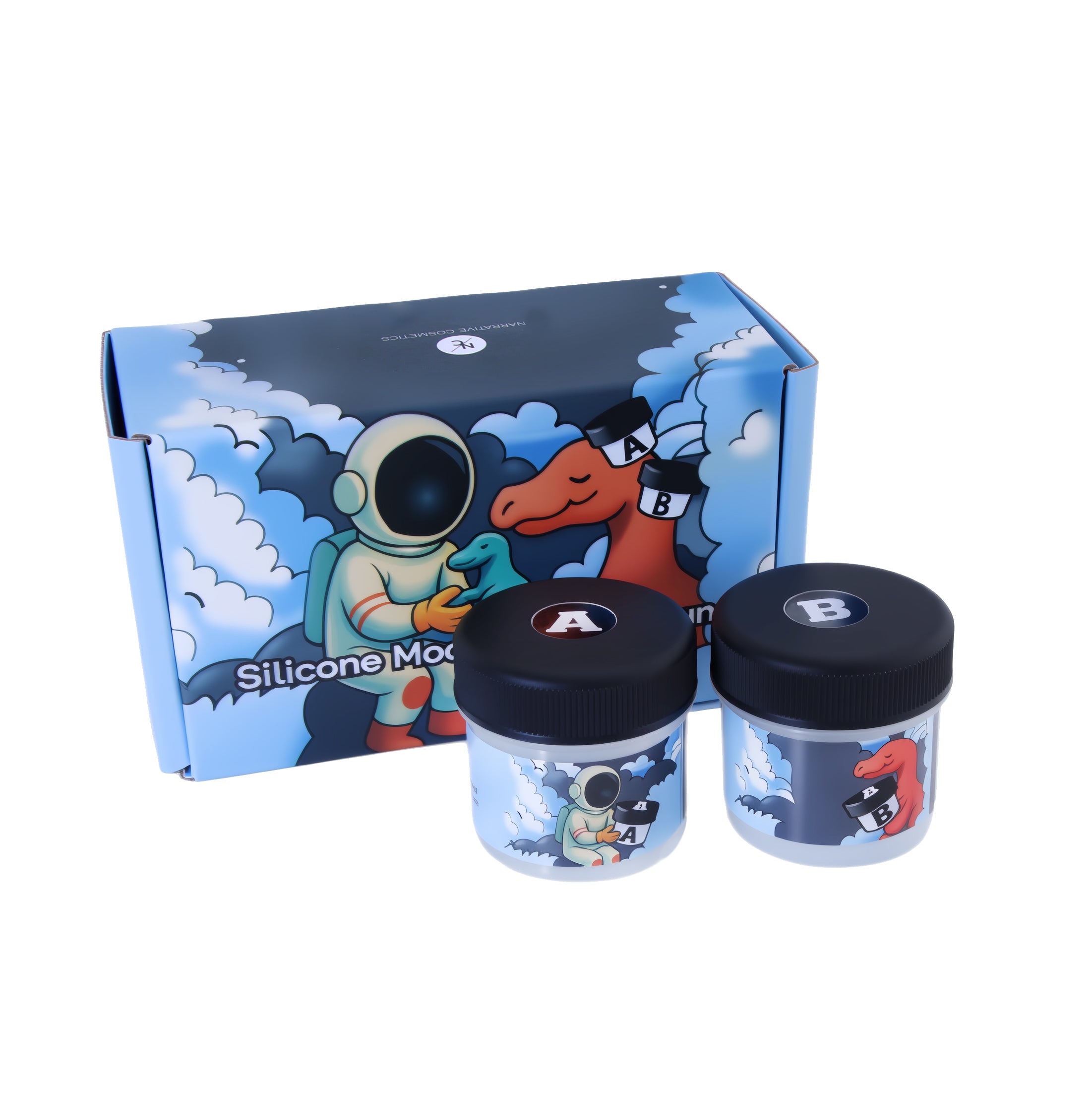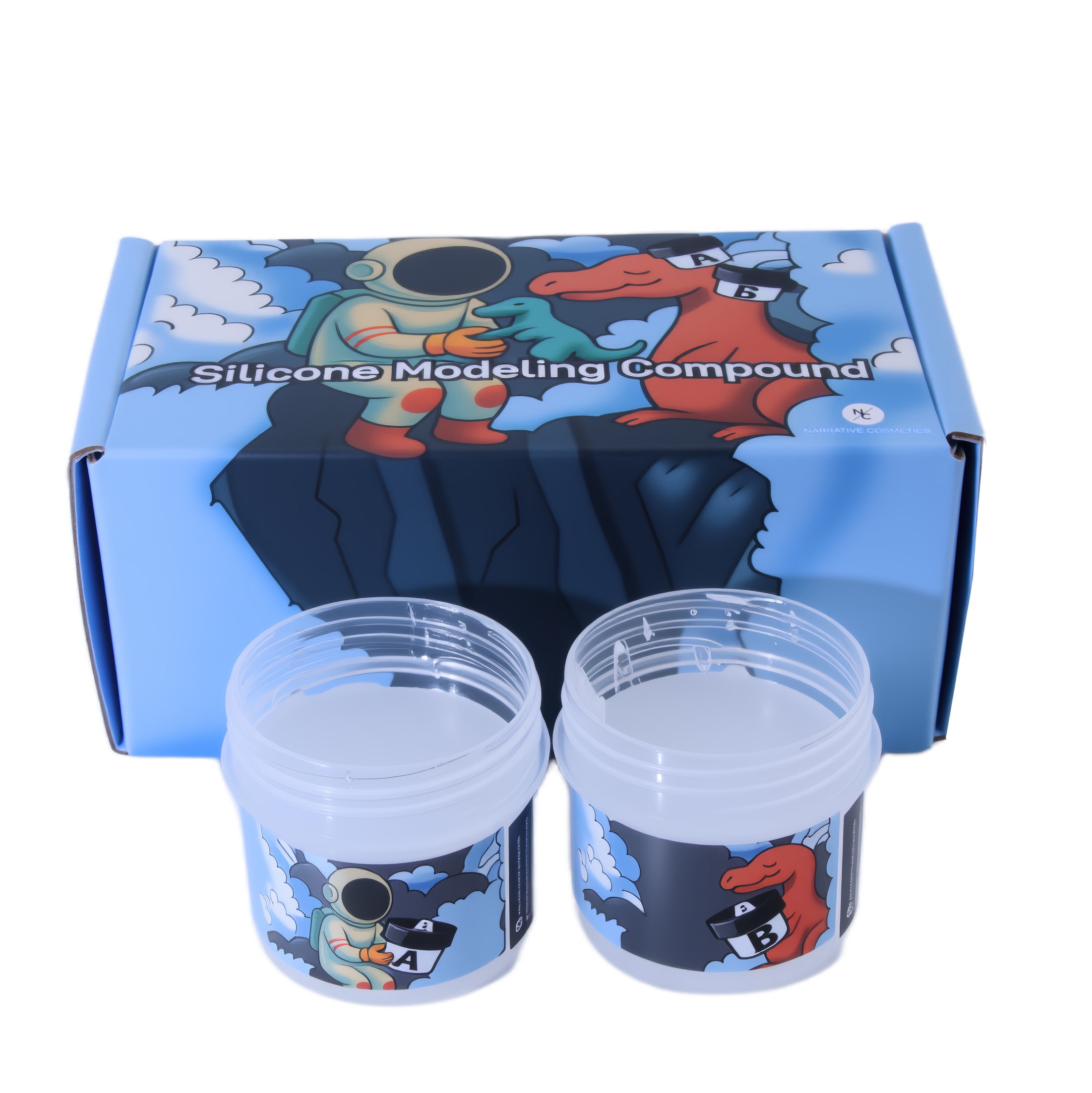 Silicone Modeling Compound Kits come with one jar of A and one jar of B. There are two sizes available: 2 Oz. Kit (1 oz. of A, 1 oz. of B) and 4 Oz. Kit (2 oz. of A, 2 oz. of B).